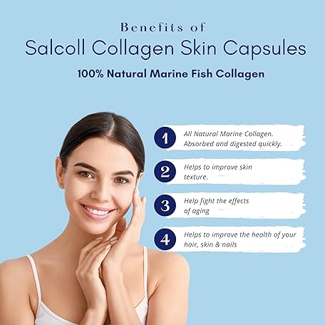 Thông tin sản phẩm Salcoll Pure Marine Collagen Skin Capsules (120 Count) – Anti-Aging Supplement for Women & Men, Boosts Collagen, Reduces Wrinkles, Supports Skin, Hair & Nails with Hydration & Nourishment