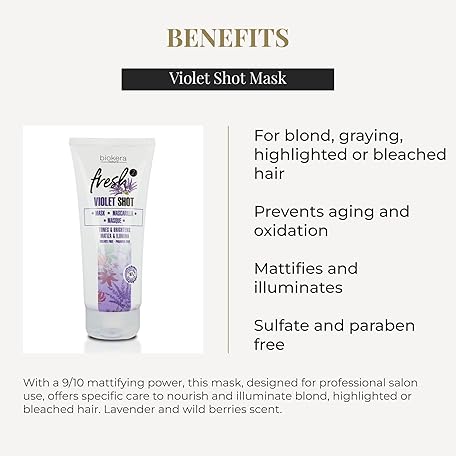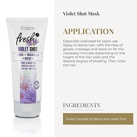 Thông tin sản phẩm SALERM - Purple Mask - Biokera Fresh Violet Shot Mask - 200 ml - For Blonde, Gray, Highlighted, or Bleached Hair - Helps Neutralize Yellow Tones - Enhances Shine