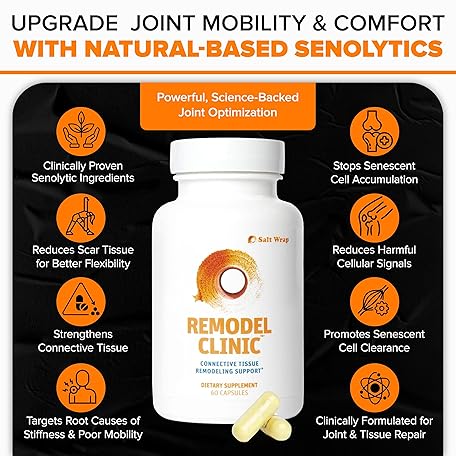 SaltWrap Remodel Clinic - Joint Remodeling Supplement for Senescent Cell Removal and Scar Tissue - Improve Mobility, Reduce Connective Tissue Stiffness - Fisetin, Quercetin, Bromelain - 60 Capsules