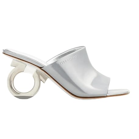 Salvatore Ferragamo Women's Astro Elina 70MM Silver Leather Slides Shoes