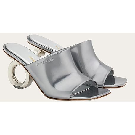 • Salvatore Ferragamo Women's Astro Elina 70MM Silver Leather Slides Shoes