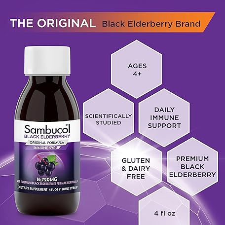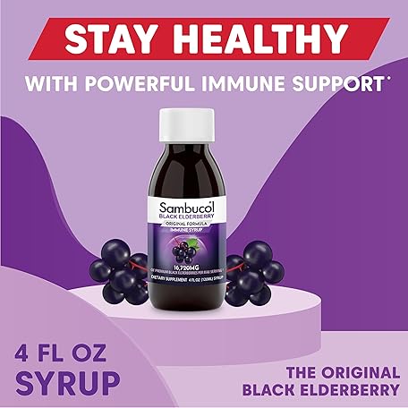Thông tin sản phẩm Sambucol Black Elderberry Syrup - Sambucus Elderberry Syrup, Black Elderberry Liquid, Immune Support, Elderberry Syrup for Kids and Adults, High Antioxidants, Gluten Free - Original Formula, 4 Fl Oz