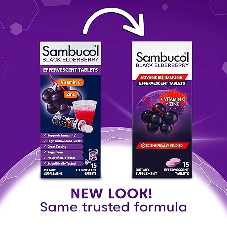 Thông tin sản phẩm Sambucol Black Elderberry Tablets with Vitamin C & Zinc - Immune Support Supplement, Black Elderberry with Zinc and Vitamin C Effervescent Tablets, High Antioxidants, Drink Fizzies- 30 Count
