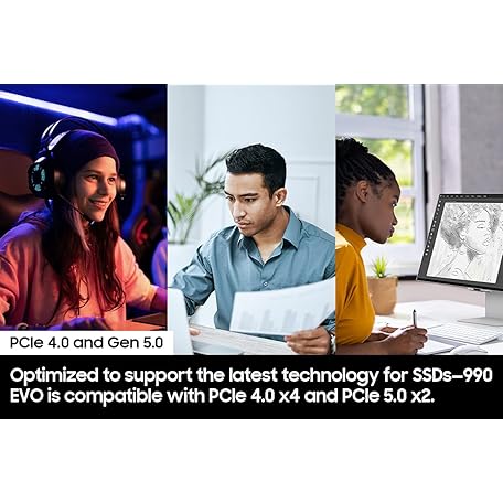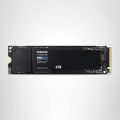 Thông tin sản phẩm SAMSUNG 990 EVO SSD 2TB, PCIe Gen 4x4, Gen 5x2 M.2 2280 NVMe Internal Solid State Drive, Speeds Up to 5,000MB/s, Upgrade Storage for PC Computer, Laptop, MZ-V9E2T0B/AM, Black
