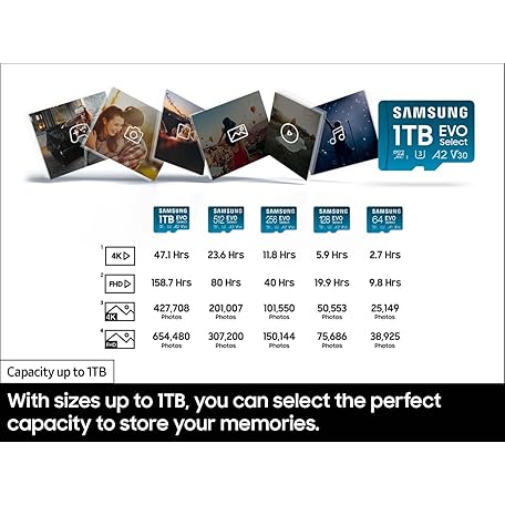 Thông tin sản phẩm Samsung EVO Select microSD Memory Card + Adapter, 128GB microSDXC, Up-to 160 MB/s, 4K UHD, UHS-I, C10, U3, V30, A2, for Mobile Phone, Smartphones, Nintendo-Switch, and Tablets (MB-ME128SA/AM)