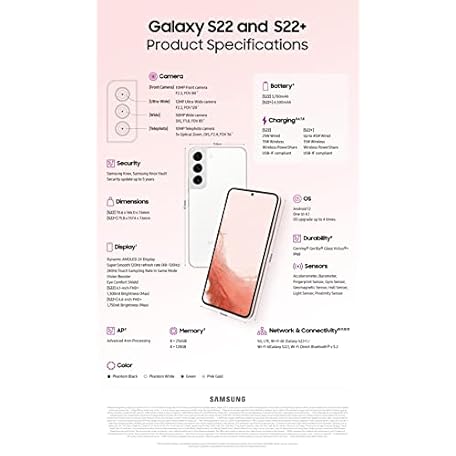 Thông tin sản phẩm Samsung Galaxy S22+ Plus 5G, US Version, 128GB, Phantom Black - Verizon (Renewed)