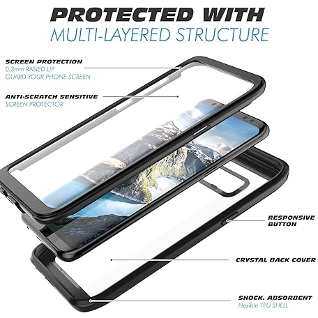 Thông tin sản phẩm Samsung Galaxy S8 Plus Case, Full Body Bumper Case with Built-in Screen Protector - Slim, Clear, Shock-Absorbing, Dustproof, Lightweight Cover for Samsung Galaxy S8 Plus (Black/Clear)