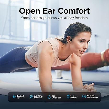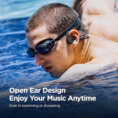 Sanag B60S Bone Conduction Sports Headphones, IPX8 Waterproof Swimming Bluetooth 5.3 Earphones, 64GB MP3 Player, Open Ear Wireless Headset with Mic & App, for Running, Cycling, Workout (Black)