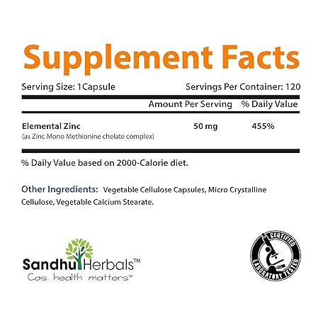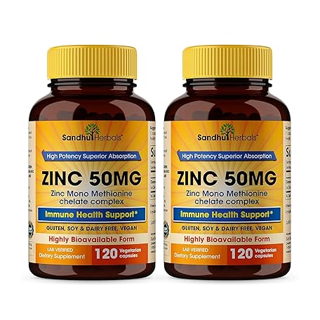 Sản phẩm SANDHUHERBALS Zinc Supplements with Black Currant for Men and Women | Zinc 50mg 120 Vegetarian Capsules (Pack of 2) | Highly Absorbable for Immune Support | Zink 50 mg Supplement Supports Skin Health đang được bán với giá ưu đãi là $38.15 tại nước Mỹ.