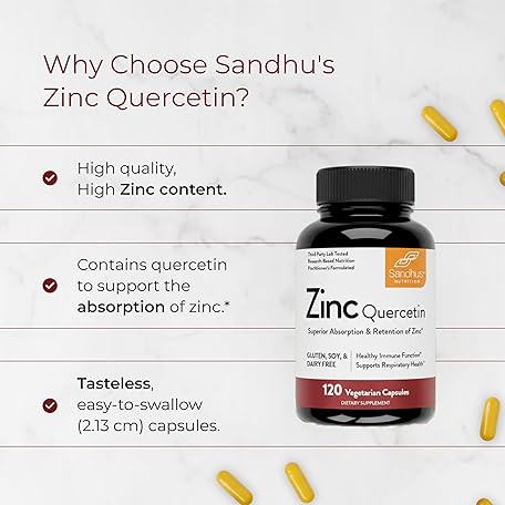 Sản phẩm Sandhu's Zinc Quercetin 120 Vegetarian Capsules (Pack of 1) | High Absorption Zink Supplements for Immunity and Seasonal Allergy | Antioxidant Immune Support for Men and Women | Easy to Swallow đang được bán với giá ưu đãi là $31.3811 tại nước Mỹ.