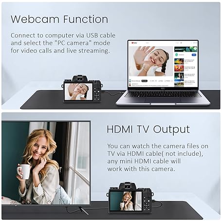 Thông tin sản phẩm Saneen Digital Camera, 4k Cameras for Photography & Video, 64MP WiFi Touch Screen Vlogging Camera for YouTube with Flash, 32GB Card, Lens Hood, 3000mAH Battery, Front and Rear Cameras - Black