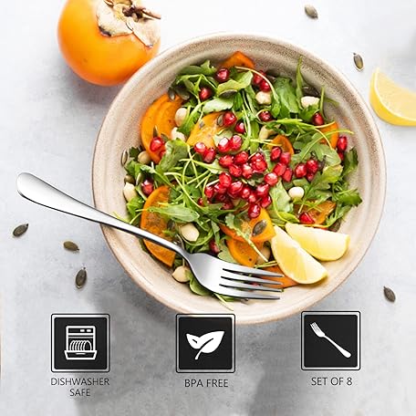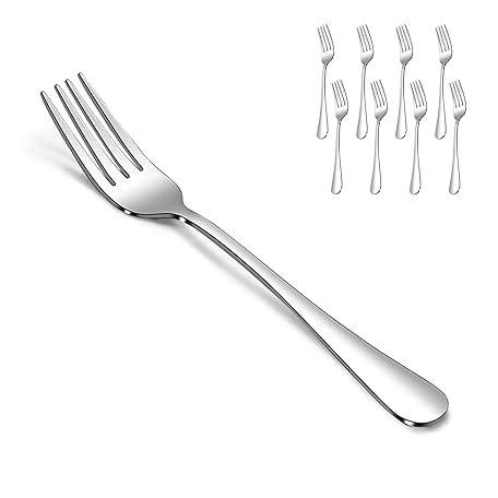 • SANTUO Dessert Forks Set - 8-piece Stainless Steel Salad Forks Cream Fork Flatware Set Reusable for Household Use or Camping - Silver 6.7 Inches