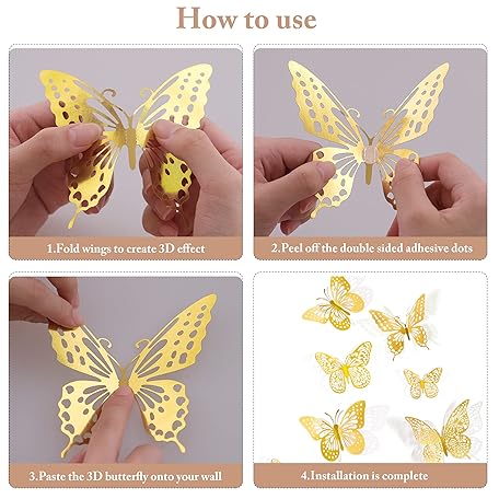 Sản phẩm SAOROPEB 3D Butterfly Wall Decor - 48 Pcs, 4 Styles, 3 Sizes, Gold Butterfly Decorations for Birthday & Party Celebrations, Removable Stickers đang được bán với giá ưu đãi là $7.6191 tại nước Mỹ.