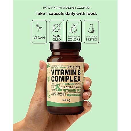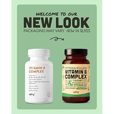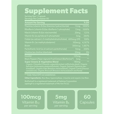 Thông tin sản phẩm sapling Vegan Vitamin B Complex - Whole Food Blend with Essential B Vitamins B1, B2, B3, B5, B6, B7, Folate, B12-60 Caps