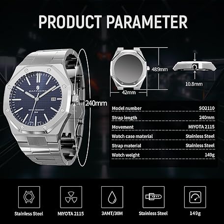 Thương hiệu SAPPHERO là cái tên nổi tiếng được rất nhiều khách hàng trên thế giới chọn lựa. Với kiểu dáng đẹp mắt, sang trọng, sản phẩm SAPPHERO Men's Watch Octagonal Stainless Steel Luminous Wristwatch Luxury Analog Quartz Watch for Men with Date Elegant Mens là sự lựa chọn hoàn hảo nếu bạn đang tìm mua một món cho riêng mình.