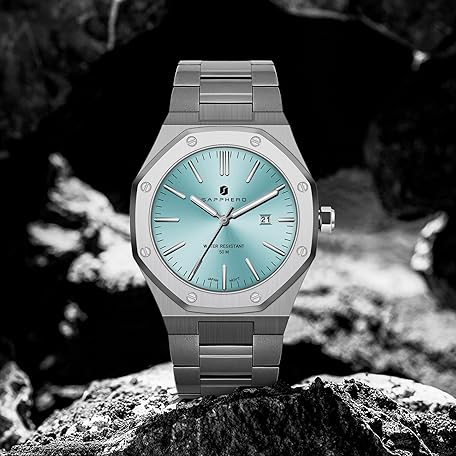 SAPPHERO Men's Watch Octagonal Stainless Steel Luminous Wristwatch Luxury Analog Quartz Watch for Men with Date Elegant Mens