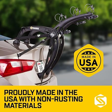 Sản phẩm Saris Bones EX 3-Bike Trunk Rack Bicycle Carrier, Durable, Rust-Free, Anti-Sway Straps, Fits Most Vehicles, Made in USA, Arc-Based Design, 100% Recyclable Materials đang được bán với giá ưu đãi là $226.7091 tại nước Mỹ.