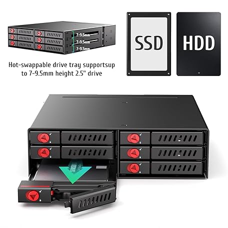 Sản phẩm Sata HDD & SSD Hot Swap Cage, 6 Bay Hard Drive Dock for 5.25” Enclosure, 6 Bay Hard Drive Station with Colling Fans đang được bán với giá ưu đãi là $67.6236 tại nước Mỹ.