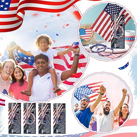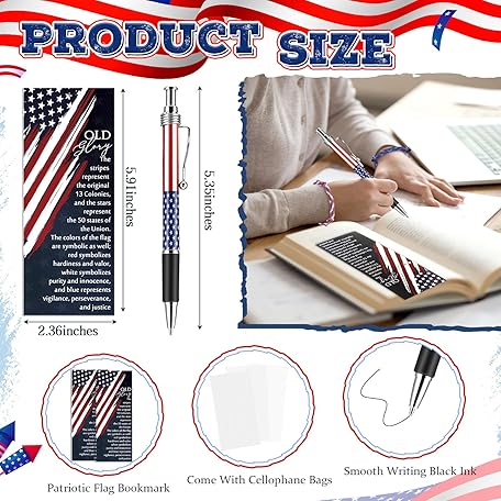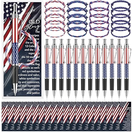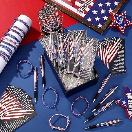 Sayglossy 60 Pcs American Flag Souvenir Gifts Christmas Veterans Gifts Bulk American Flag Ballpoint Pens Rope Bracelets and Star Stripe Bookmarks for Patriotic Army Veterans Memorial Party Favors