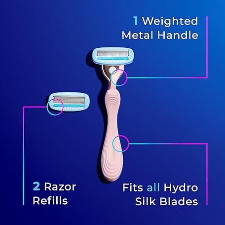 Thông tin sản phẩm Schick Hydro Silk Rose Gold Metal Razor for Women | Womens Razors, 5-Blade Razors for Women, Includes 1 Womens Razor Handle & 2 Refills