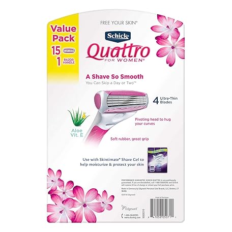 Sản phẩm Schick Quattro for Women Razor, Enriched with Aloe and Vitamin E, 15 Cartridges đang được bán với giá ưu đãi là $38.1391 tại nước Mỹ.