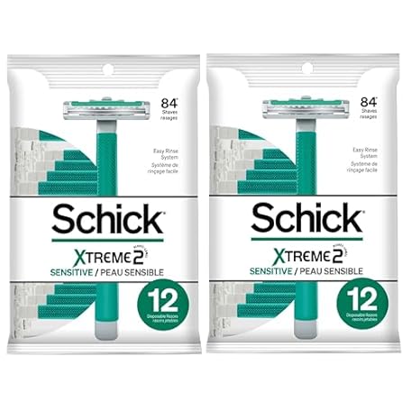 Schick Xtreme 2-Blade Sensitive Men's Disposable Razors, 12 Ct, With Vitamin E Strips, Non Slip Handle - 2 Pack