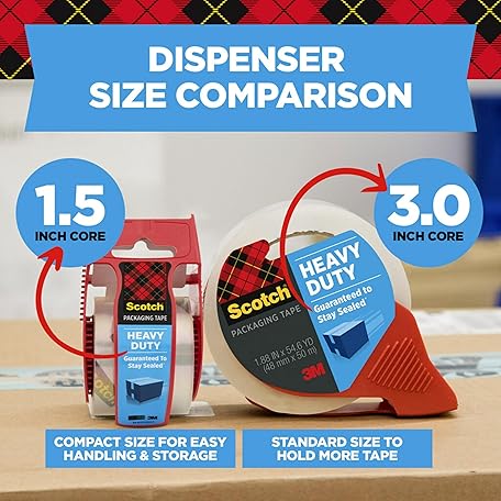 Thông tin sản phẩm Scotch Heavy Duty Shipping Packing Tape, Clear, Packing Tape for Moving Boxes and Packaging Supplies, 1.88 in. x 22.2 yd., 6 Roll Dispensers, Moving Supplies