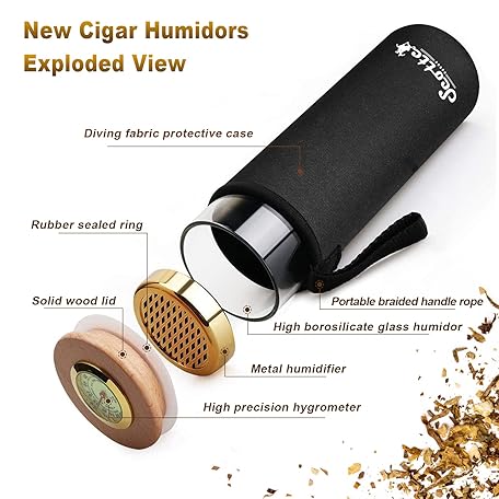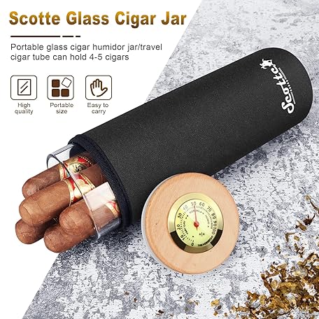 Sản phẩm Scotte Cigar Case Humidor Gift Box Cigars jar humidifiers-Cigar Hygrometer humidifier-Travel Cigar Tube for 4 to 5 Cigars (Black) đang được bán với giá ưu đãi là $19.6091 tại nước Mỹ.
