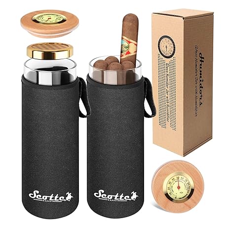 Thương hiệu Scotte là cái tên nổi tiếng được rất nhiều khách hàng trên thế giới chọn lựa. Với kiểu dáng đẹp mắt, sang trọng, sản phẩm Scotte Cigar Case Humidor Gift Box Cigars jar humidifiers-Cigar Hygrometer humidifier-Travel Cigar Tube for 4 to 5 Cigars (Black) là sự lựa chọn hoàn hảo nếu bạn đang tìm mua một món cho riêng mình.