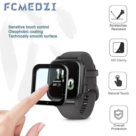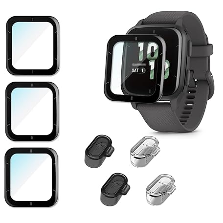 Screen Protector Compatible for Garmin Venu Sq 2,Curved 3D Heat Bending Film Anti-Scratch High Definition Full Coverage and Charge Port Dust Plug(pack of 4+4)