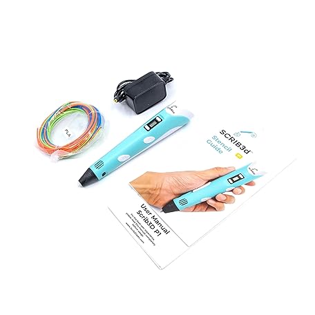 Thông tin sản phẩm SCRIB3D P1 3D Printing Pen with Display - Includes 3D Pen, 3 Starter Colors of PLA Filament, Stencil Book + Project Guide, and Power adapter