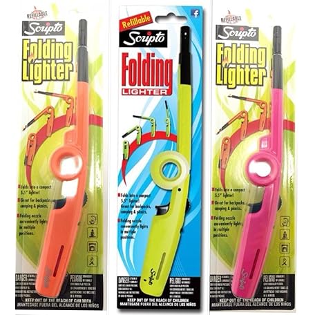 Scripto 3 Pack Combo - 3 Random color Scripto "Refillable" Folding Lighter Safe for Camping/grilling/home, Adjustable Flame