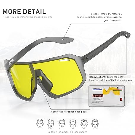 • SCVCN Night Vision Driving Glasses Anti Glare Polarized Yellow Lens Women Men Goggles Sport Sunglass Bicycle MTB DZ-S62