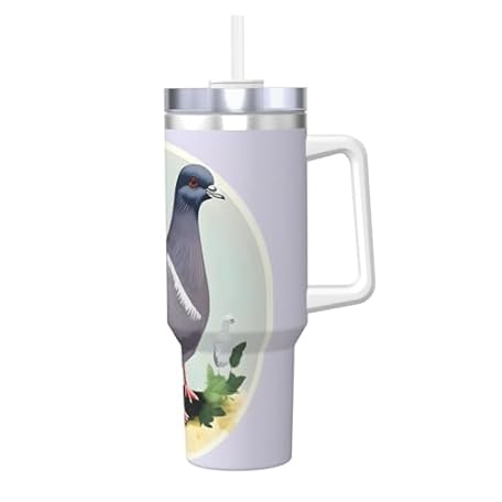 SDEGTHO Grey Pigeon Print 40 Oz Ice Bully With Handle And Straw Made Of Stainless Steel, Double Wall Insulated With Lid