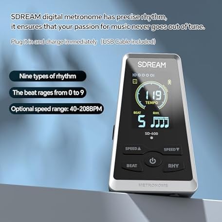 SDREAM Digital Metronome for Piano,Guitar,Violin,Rechargeable LCD Electronic Metronome with Human Voice,Professional Metronome for Beginners & Musicians,Instrument Volume & Beat Speed Adjustable