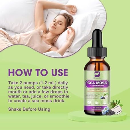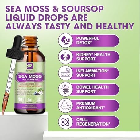 Thông tin sản phẩm Sea Moss Liquid Drops - Irish Sea Moss & Black Seed Oil with Ashwagandha, Soursop Bitters, Elderberry, Burdock Root, Bladderwrack, Seamoss Supplement Support Antioxidant, Immune, Gut Health