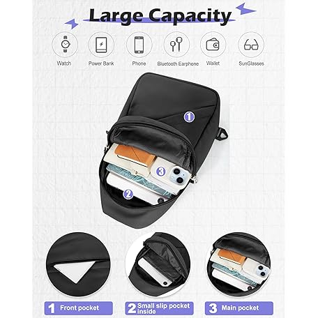Thông tin sản phẩm SEAFEW Small Black Sling Crossbody Bag for Men Women, Shoulder Daypack Mini Anti-Theft Cross Body Motorcycle Chest Bags, Small One Strap Fanny Back Pack for Casual Travel Hiking Sport Gym