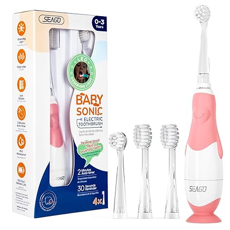 Sản phẩm SEAGO Toddler Electric Toothbrushes for Baby Ages 0-3 Years, Baby Toothbrush with Smart Timer and Suction Base, 4 Replacement Brush Heads SG-513(Pink-C) đang được bán với giá ưu đãi là $18.5191 tại nước Mỹ.