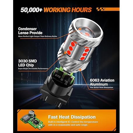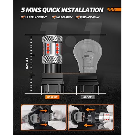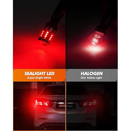 Thông tin sản phẩm SEALIGHT 3157 LED Bulb Brake Light, Brake Bulbs 600% Brighter 6000K 1800LM Super Bright 3056 3057 3156 LED Bulbs with HD Projector Len, Tail Brake Stop Lights Taillights for Cars, Brilliant Red 2PCS