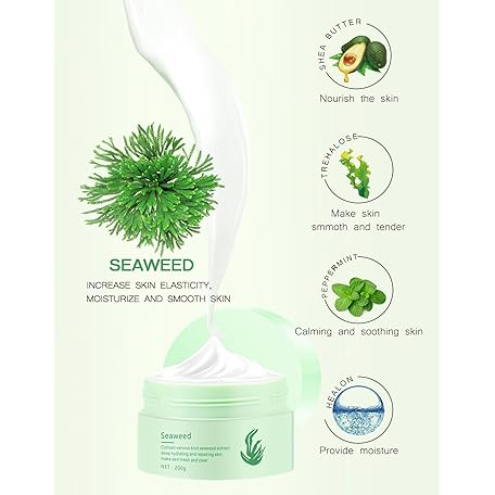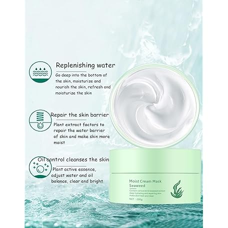 Seaweed Face Moisturizer, Seaweed Face Mud Mask Deep Hydrating Face Cream for Women Oil-Water Balance Facial Moisturizer for Oily and Dry Skin Repairing Barrier and Nourishing Skin,7.05Oz