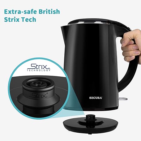 Thương hiệu Secura là cái tên nổi tiếng được rất nhiều khách hàng trên thế giới chọn lựa. Với kiểu dáng đẹp mắt, sang trọng, sản phẩm Secura Original Stainless Steel Double Wall Electric Water Kettle 1.8 Quart with Auto Shut-Off & Boil-Dry Protection, Black Onyx SWK-1701DA/HB-3227B là sự lựa chọn hoàn hảo nếu bạn đang tìm mua một món cho riêng mình.