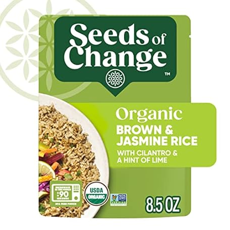 SEEDS OF CHANGE Organic Brown Jasmine Rice with Cilantro Lime, Organic Food, 8.5 OZ Pouch (Pack of 6)