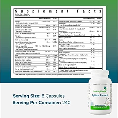 Thông tin sản phẩm Seeking Health Optimal Prenatal - Supplement with Vitamin B12, L-Methylfolate, & Choline - Vegetarian Supplement to Support Optimal Prenatal Health - 240 Capsules