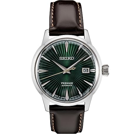 Thương hiệu SEIKO là cái tên nổi tiếng được rất nhiều khách hàng trên thế giới chọn lựa. Với kiểu dáng đẹp mắt, sang trọng, sản phẩm SEIKO Automatic Watch for Men - Presage Cocktail Time - Patterned with Golden Numerals and Date Calendar, 50m Water-Resistant là sự lựa chọn hoàn hảo nếu bạn đang tìm mua một món cho riêng mình.