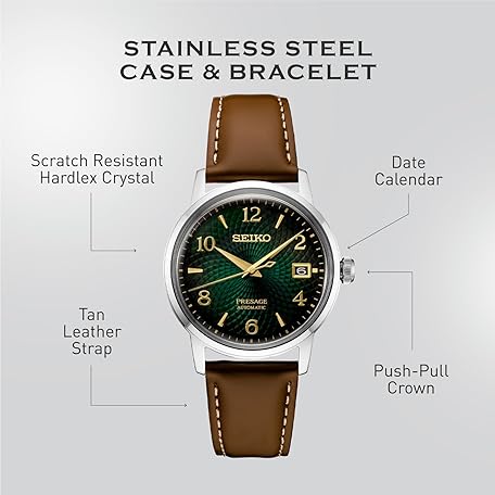 Sản phẩm SEIKO Automatic Watch for Men - Presage Cocktail Time - Patterned with Golden Numerals and Date Calendar, 50m Water-Resistant đang được bán với giá ưu đãi là $367.875 tại nước Mỹ.
