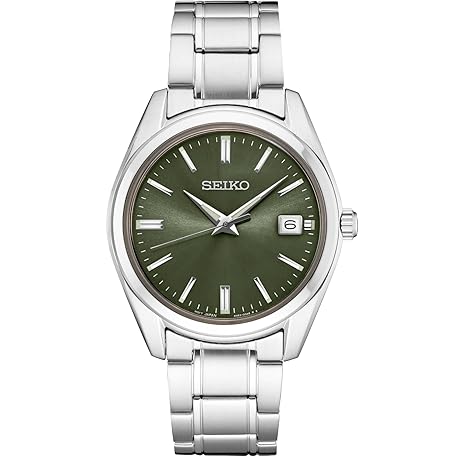 Thông tin sản phẩm SEIKO Men's Quartz Watch - Green Dial with Date, Stainless Steel Bracelet, 100M Water Resistant
