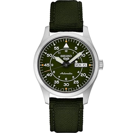 Thông tin sản phẩm SEIKO SRPH29 Watch for Men - 5 Sports - Automatic with Manual Winding Movement, Green Dial, Stainless Steel Case, Green Nylon Strap, 100m Water Resistant, with Day/Date Display