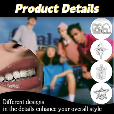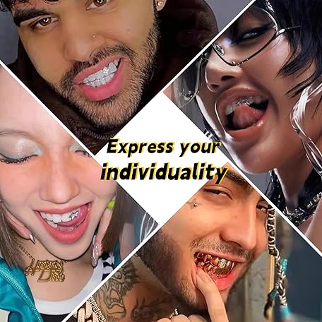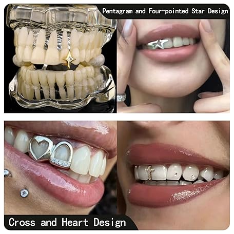 SEJGGKQ Fake Grills,Grillz Teeth Men Women,Tooth Grill,Vampire Fangs Jewelry,Joker Accessories Hip-Hop Mouth Dental Fang Kit Braces,Metal Dientes Rapper,for Mens Womens Jewels