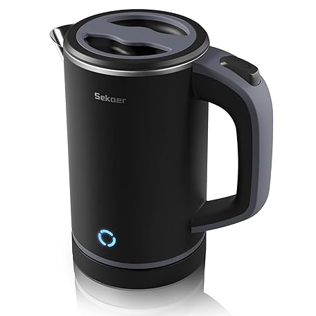 Thông tin sản phẩm Sekaer Small Electric Tea Kettle Stainless Steel 0.8L Portable Travel Hot Water Boiler, Mini Electric Coffee Kettle with Auto Shut-Off & Boil Dry Protection, Cordless Base & LED Indicator