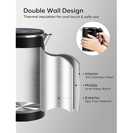Thương hiệu Sekaer là cái tên nổi tiếng được rất nhiều khách hàng trên thế giới chọn lựa. Với kiểu dáng đẹp mắt, sang trọng, sản phẩm Sekaer Small Electric Tea Kettle Stainless Steel 0.8L Portable Travel Hot Water Boiler, Mini Electric Coffee Kettle with Auto Shut-Off & Boil Dry Protection, Cordless Base & LED Indicator là sự lựa chọn hoàn hảo nếu bạn đang tìm mua một món cho riêng mình.